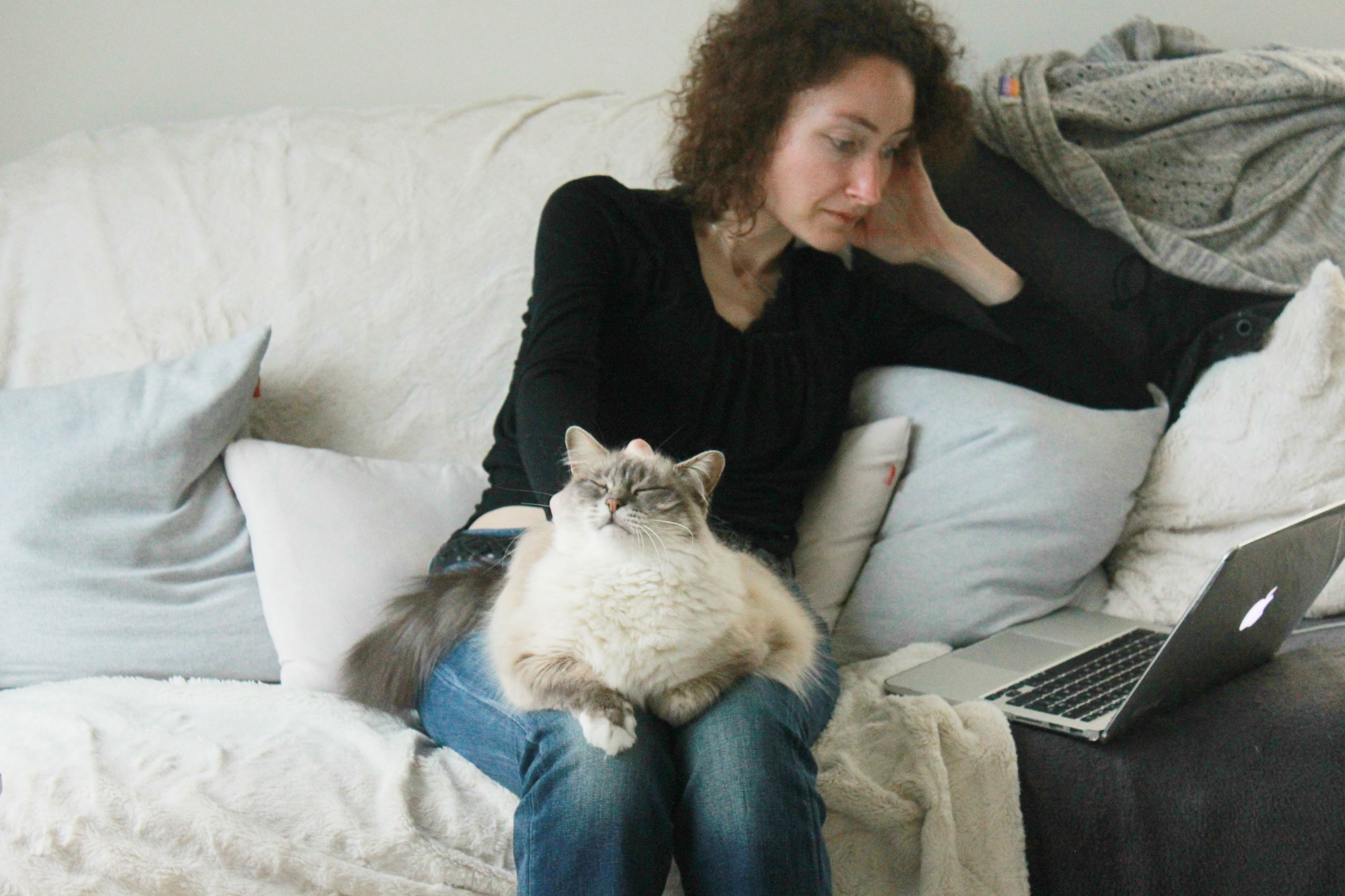 Elle ne s'était jamais couché sur mes genoux depuis 4 ans qu'elle est avec nous. Depuis quelques mois, elle le faisait avec mon homme, mais pas moi. Donc, hier, c'était une grande première :)